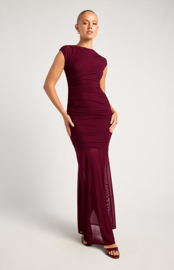 Valery Sleeveless Mesh Maxi Dress - Merlot