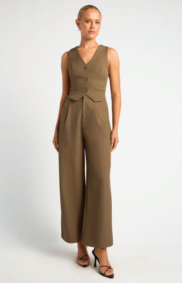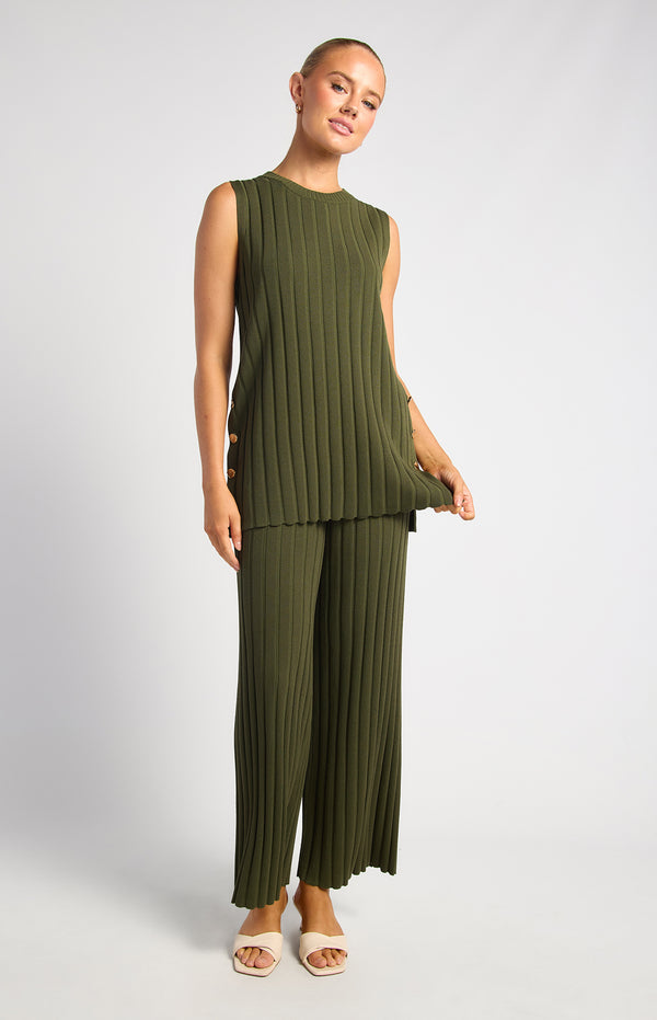 Uma Sleeveless Top & Pants Knit Set - Olive
