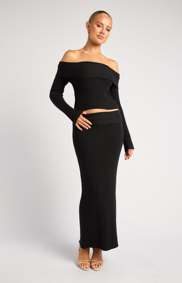 Lucah Top & Maxi Skirt Knit Set - Bone