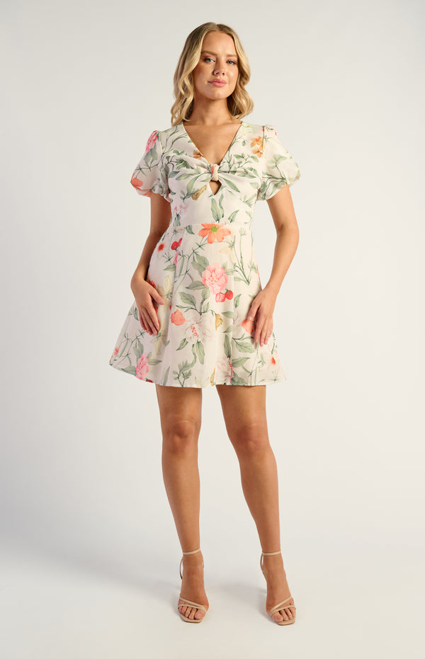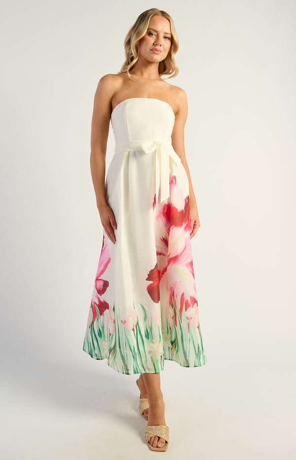 Kendall Off Shoulder Chiffon Dress - Floral Blue
