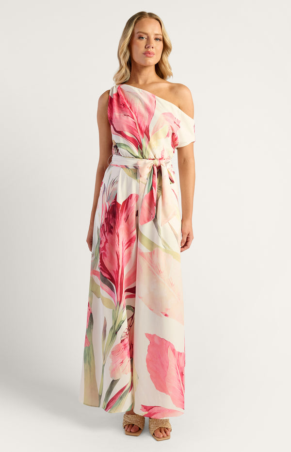 Pricilla One-Shoulder Floral Jumpsuit - Pink