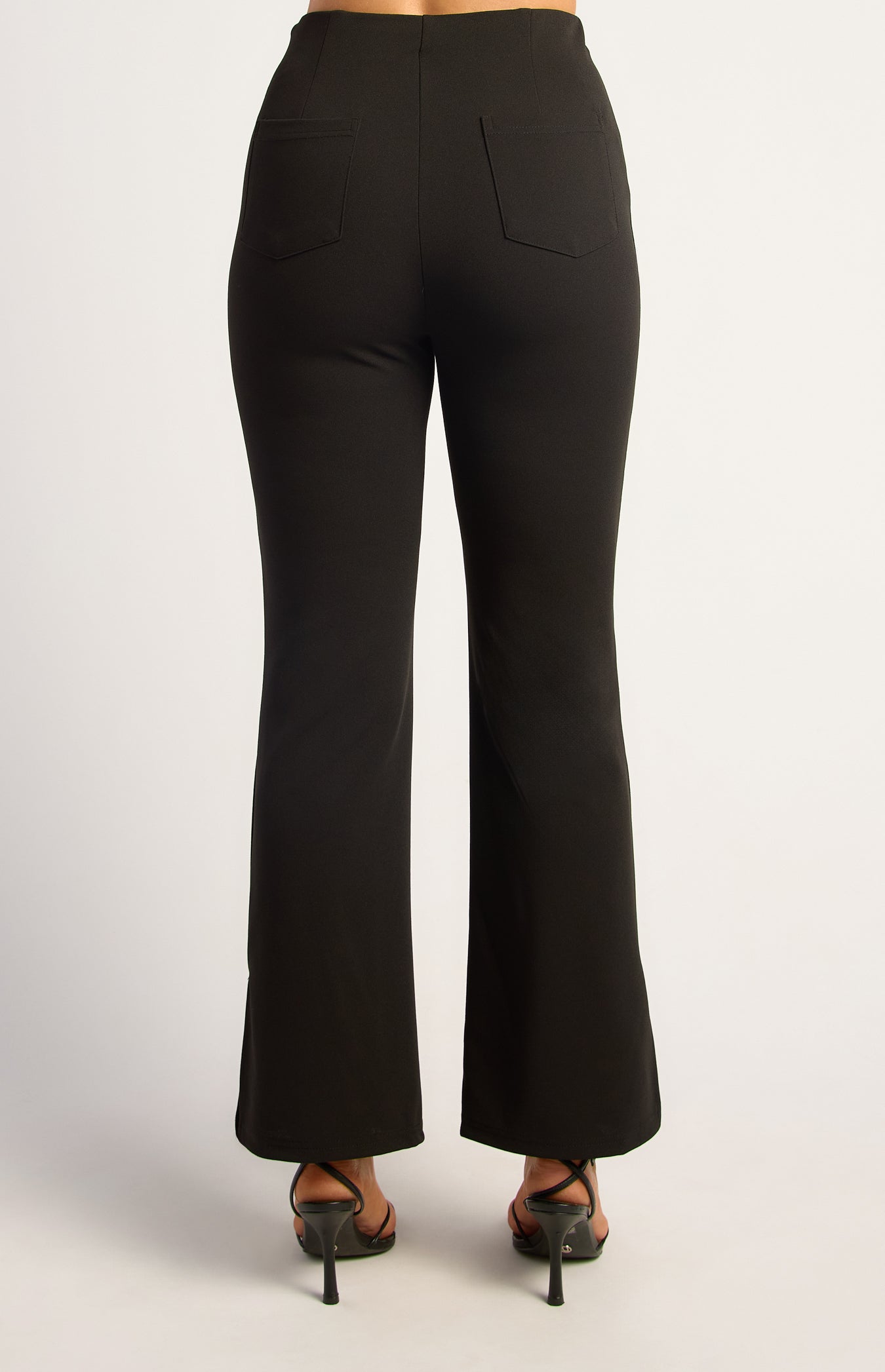 Polished, flattering, and effortlessly elevated—the Mindie Side Split Pants are your new wardrobe power move. Designed with a smooth, high-waisted fit and a subtle flare through the leg, these pants elongate your silhouette while keeping things modern and refined. The understated side split detail adds just the right amount of edge, making them perfect for desk-to-dinner styling.