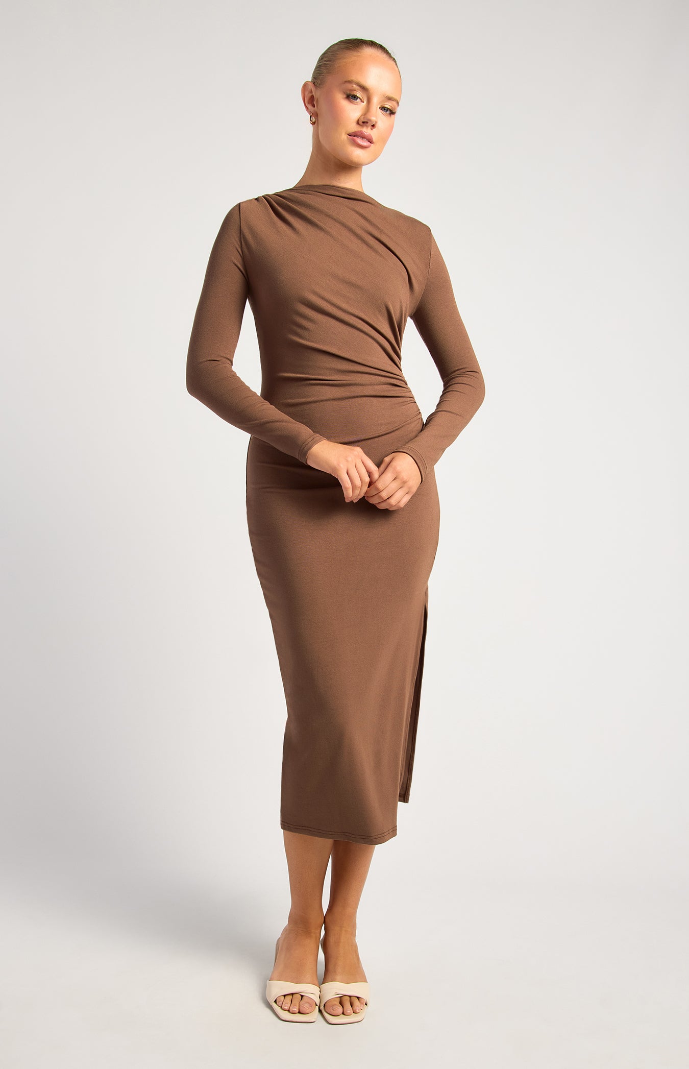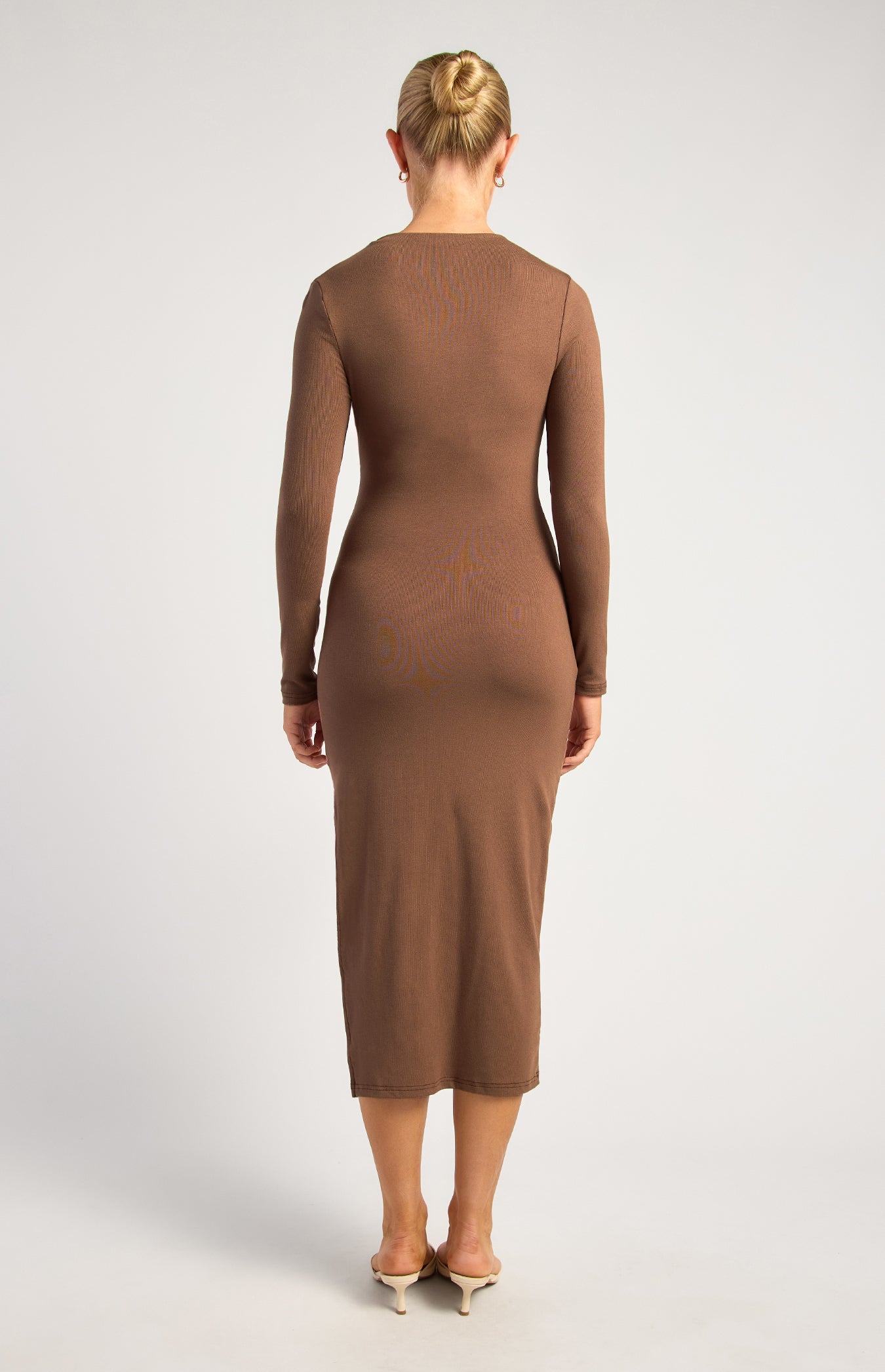 Delaney Long Sleeve Midi Dress - Ash Brown