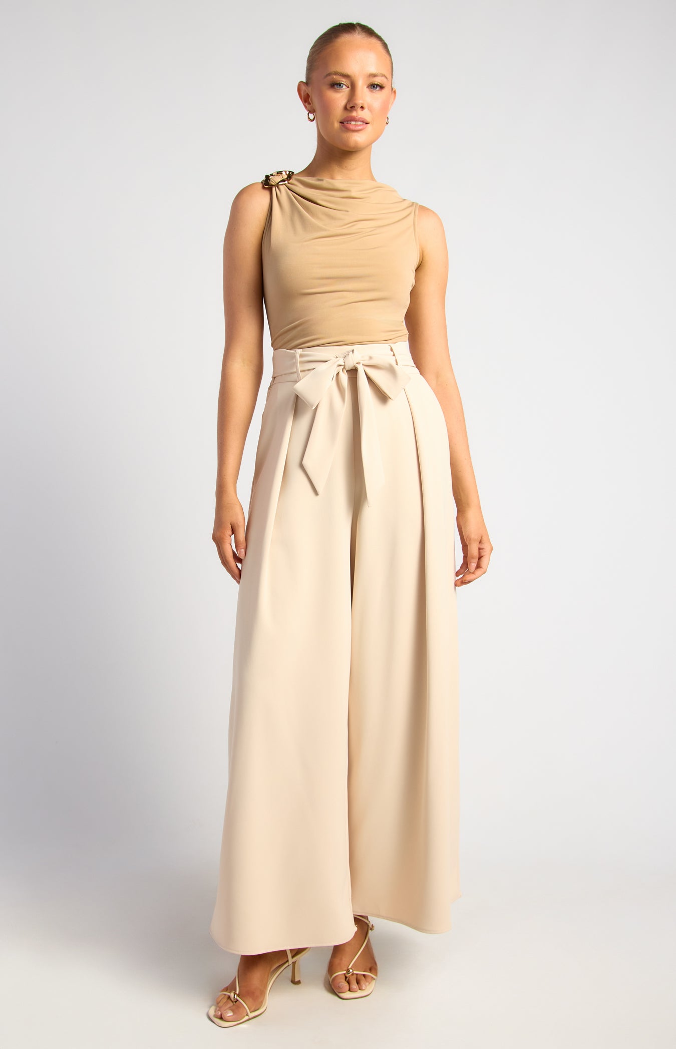 Minimal effort, maximum impact — the Emari Top is that elevated basic your wardrobe's been craving. Designed with a luxe gold tortoiseshell buckle and asymmetric draping, this one-shoulder style brings a bold edge to any outfit. Wear it with tailored trousers, a mini, or layered under a blazer — she’s versatile and vibey.