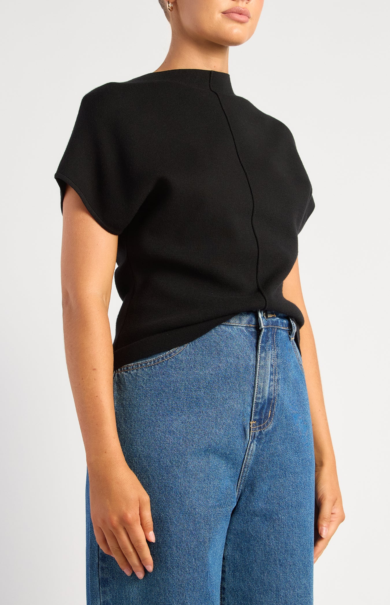 Clean lines, effortless structure, and that elevated everyday feel—the Grayson Knit Top is your new go-to for polished simplicity. Designed in a luxe black knit with a modern high neckline and subtle cap sleeves, this piece delivers understated sophistication. The relaxed silhouette drapes beautifully, making it perfect for tucking into denim or pairing with tailored pieces.