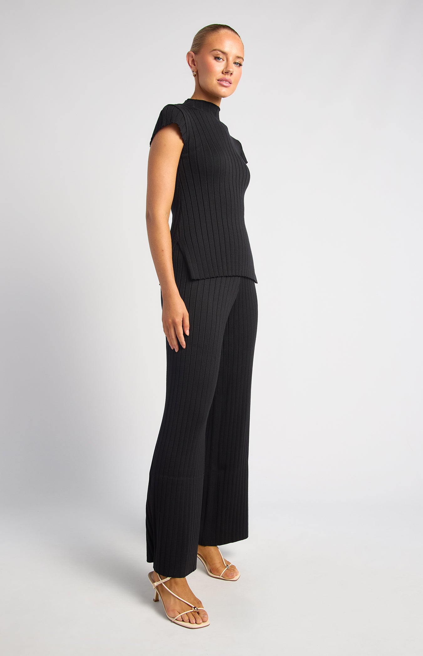 Relaxed sophistication meets everyday comfort in the Jenkins Top & Pants Knit Set. Designed in a soft ribbed knit with a flattering drape, this two-piece set brings together cozy texture and elevated style. Featuring a sleek mock neck top with subtle cap sleeves and matching wide-leg pants, it’s the kind of set that looks polished while feeling completely effortless.