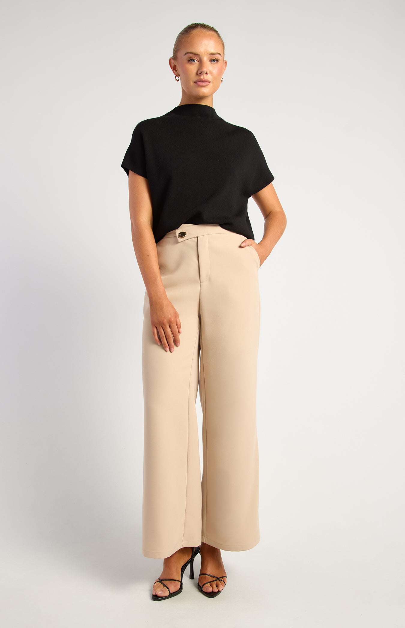 - High Neckline – Sleek, modern touch that elevates the look